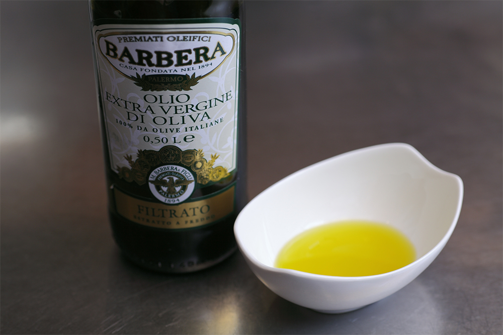 オリーブ油の旨味が味を形成するため、質のいいものをたっぷり使う。シェフは、フルーティな香り高いシチリア産「BARBERA」を愛用。