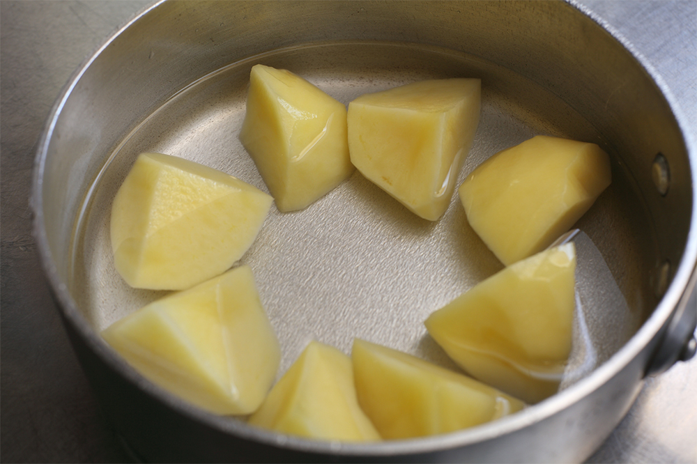 ジャガイモは適度な大きさに切り、鍋に入れてひたひたに水をはる。