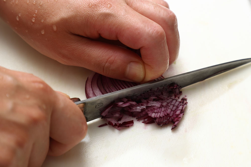 [3]赤タマネギは一発で細かく刻む