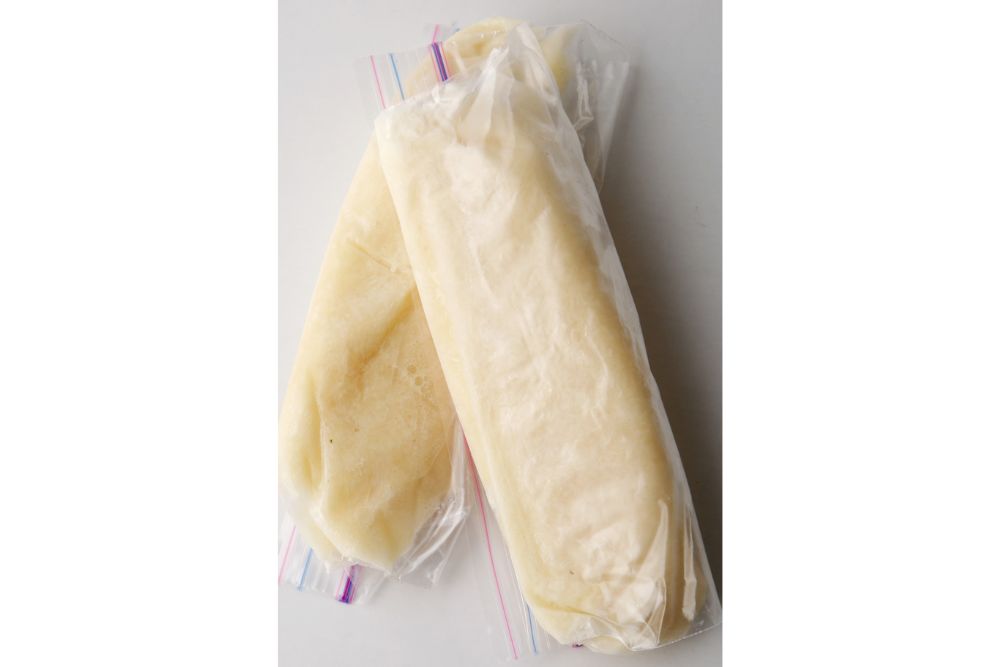 すりおろした大和芋は冷凍保存可能。解凍時間が短くなるよう平たく冷凍するのがコツ。