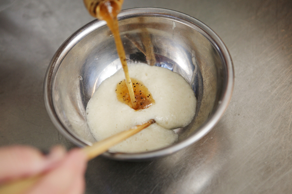 別のボウルに解凍した大和芋を入れ、フレンチドレッシングと醤油で味を調える。