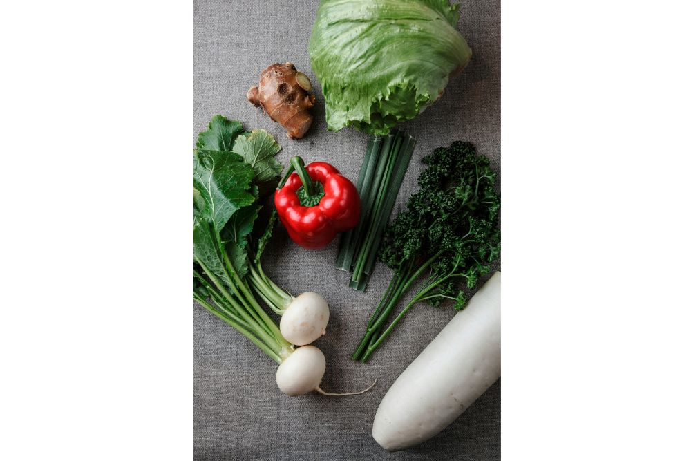 レタスにはリラックス効果、生姜には発汗や血行促進、レモングラスは胃痛の解消、パプリカは代謝促進、パセリにはむくみ防止、カブは胸やけ防止、大根には消化促進などの効果がある。