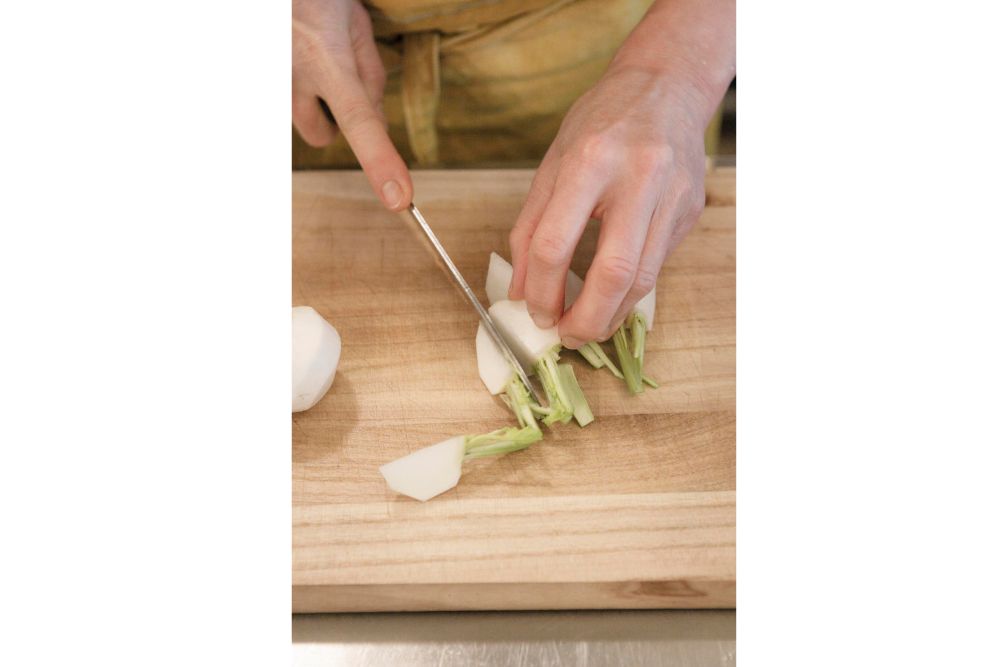 カブの皮は苦味の素になるので剥く。