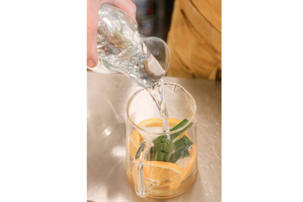 「オレンジ、カブ、レモングラスのデトックスウォーター」