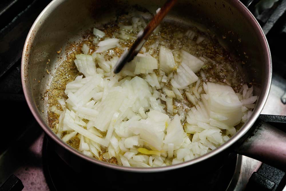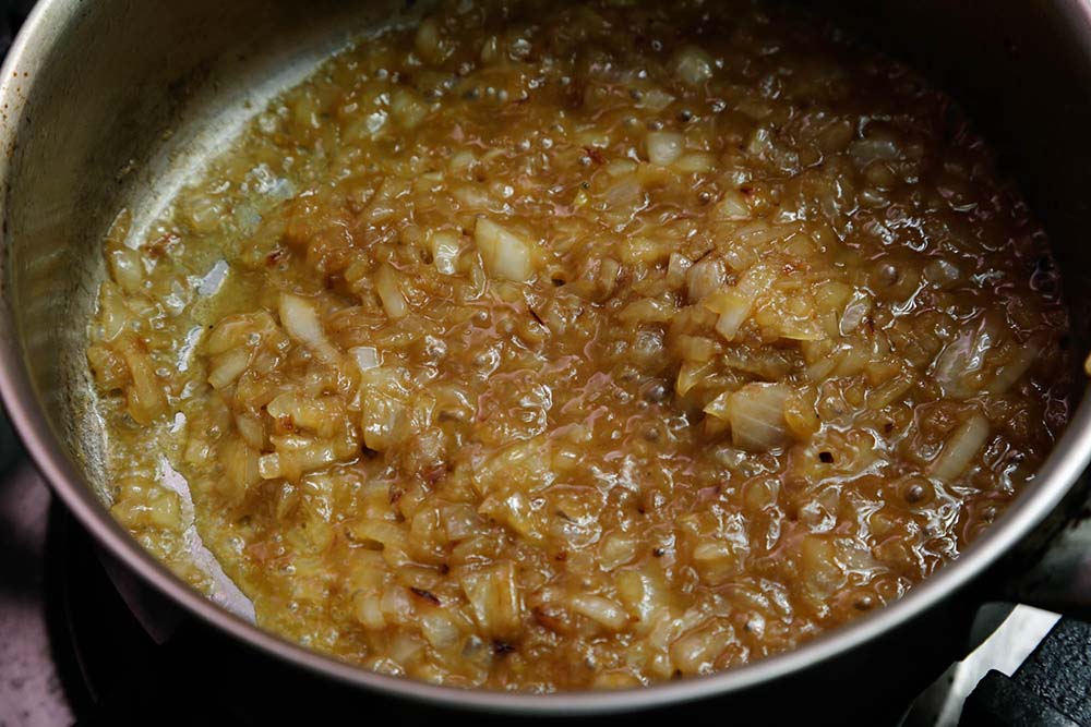 ビールを加えてアルコールが飛ぶまで煮詰める。