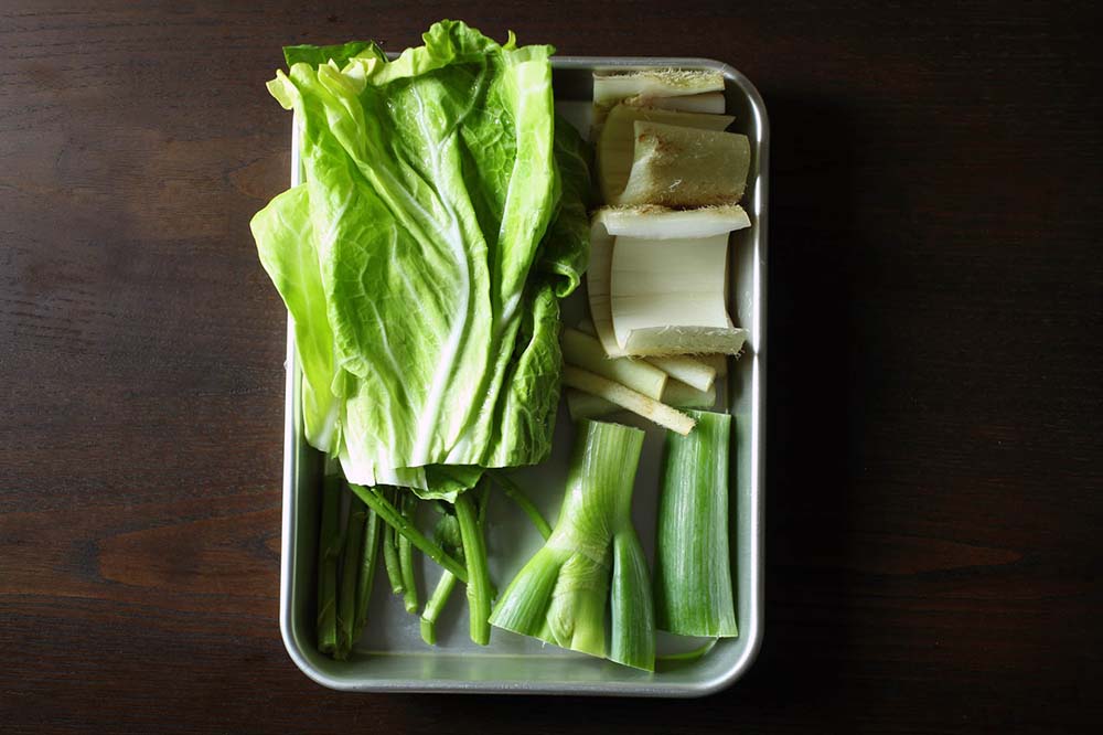 ※撮影時は山独活の皮、クレソンの茎、長ネギの青い部分、春キャベツの外側の葉
