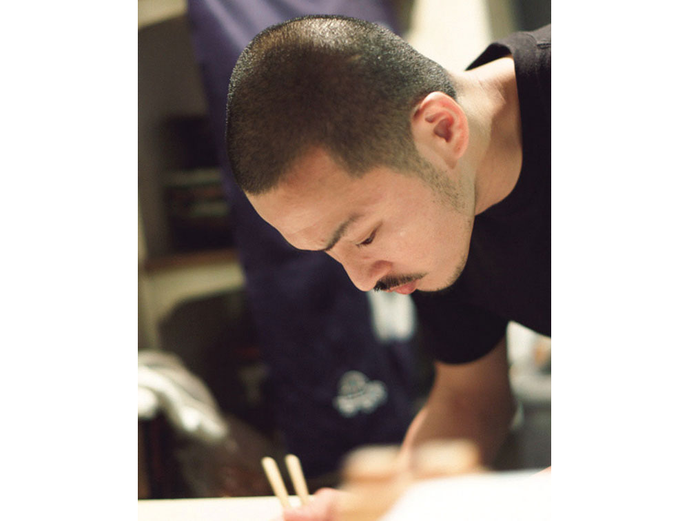 川邉輝明さん。日本酒に魅了され、三軒茶屋の日本酒居酒屋「赤鬼」で修業後、2004年に「件」をオープン。蔵元から直接仕入れた限定酒を中心に全国の地酒を約100種類取り揃え、料理や酒に合わせた温度で提供。特に看板料理でもあるおでんとの相性に定評がある。