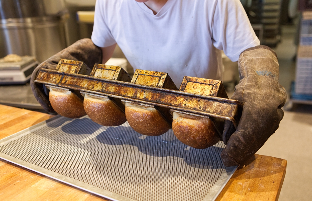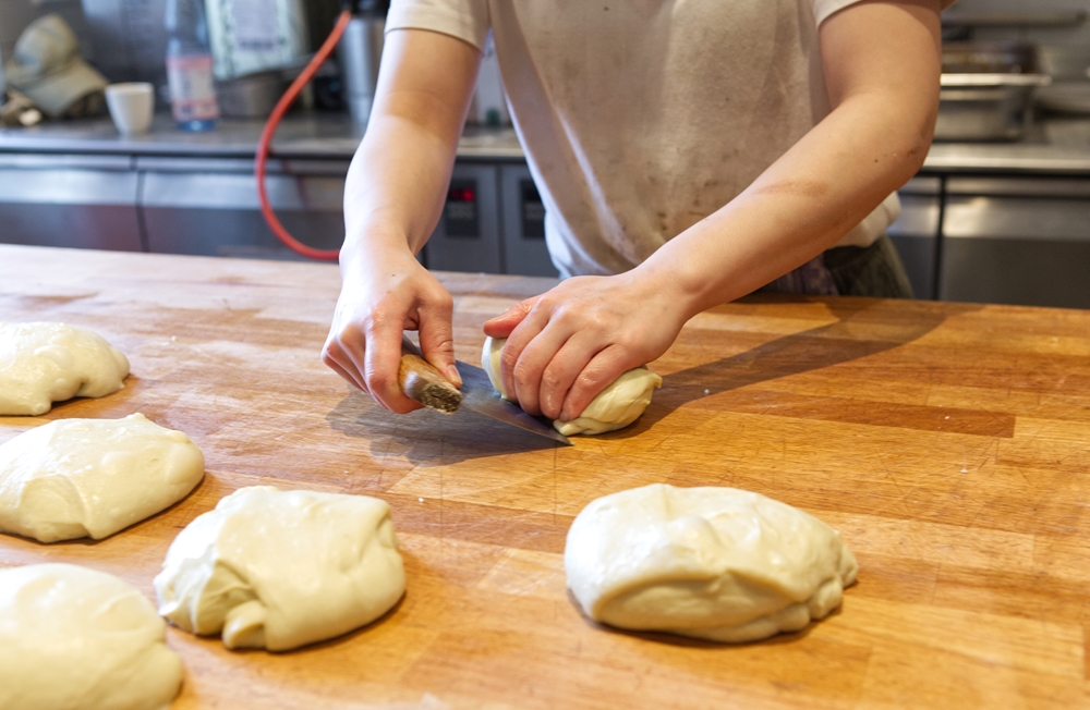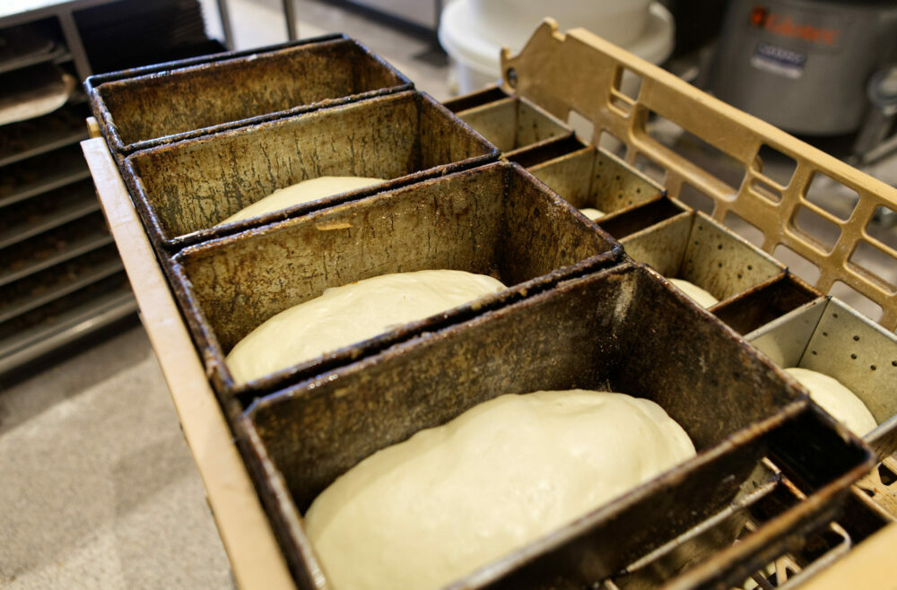 二次発酵は、店では翌日の午前中に焼きあげるタイミングに合わせて、夏は1時間、冬は2時間ほど室温で発酵させる。ホイロに入れつつも途中で冷蔵庫に入れたり、温度をゆっくりあげたりして調整している。二次発酵直後に焼くのであれば、この過程は省略可能だ。