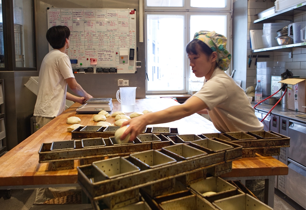 大学ではオーガニックに関する勉強をしていたこともあって訪ねたオーガニックのパン屋で、全粒粉のリンゴパンのおいしさに開眼。その場で、職業訓練生を探していませんか?とお店の人に尋ねた。噛めば噛むほど味わい深い、穀物の味。以前はどっしりした昔ながらのドイツパン作りに関わってきたが、ベルリンに来て、新しいアイデアが次々と試されるベルリンの若いパン文化も楽しんでいる。