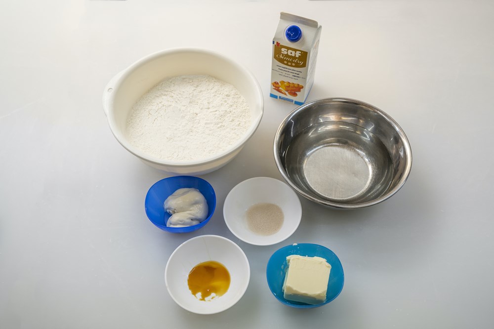 ※( )内はベイカーズパーセント。粉の総量を100%とし、その他の材料を粉に対する割合で示しています。