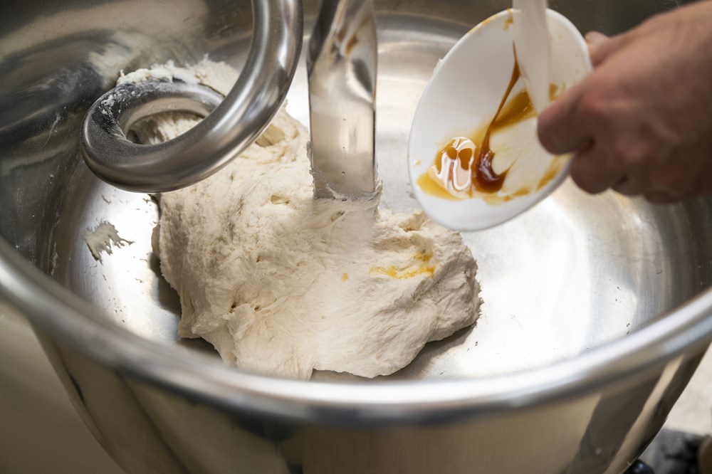 ビタミンC、水、発酵種とモルトシロップを加える。