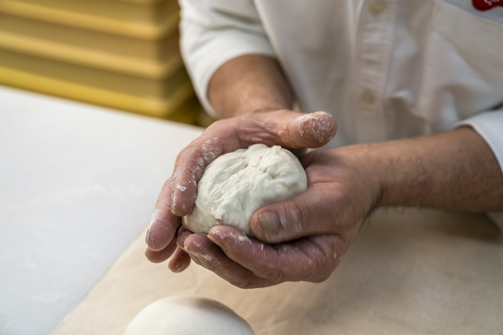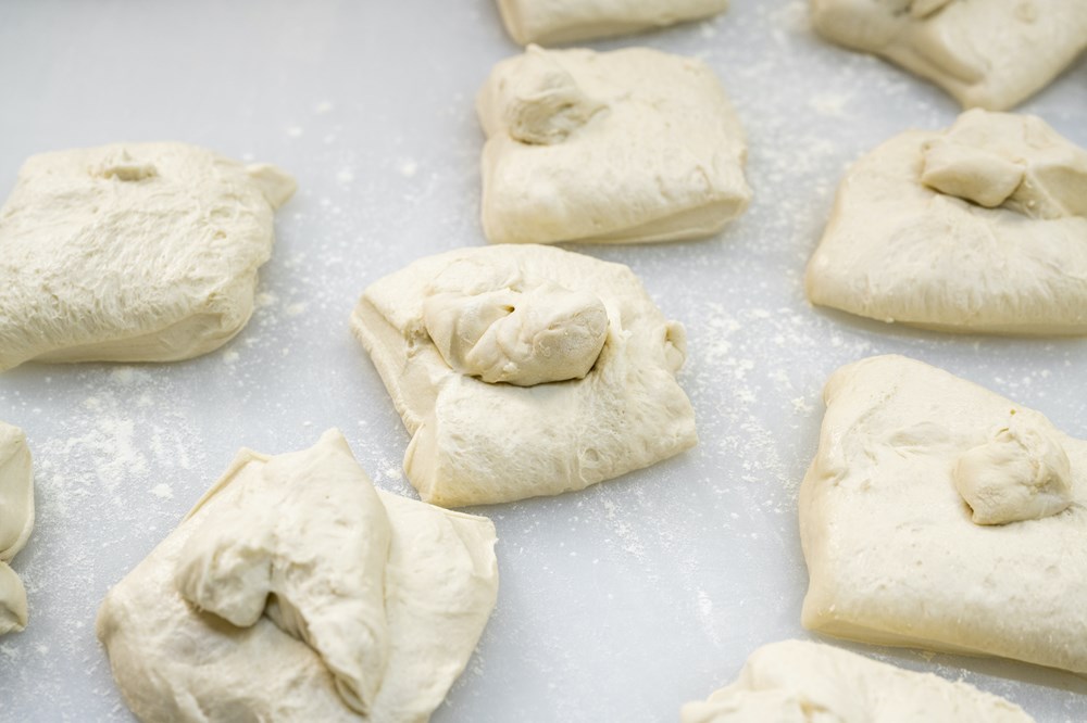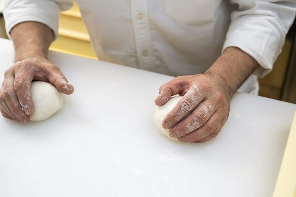 POINT:台には打ち粉をせず、内側に粉を付けないように丸める。食感を軽くする成形に。
