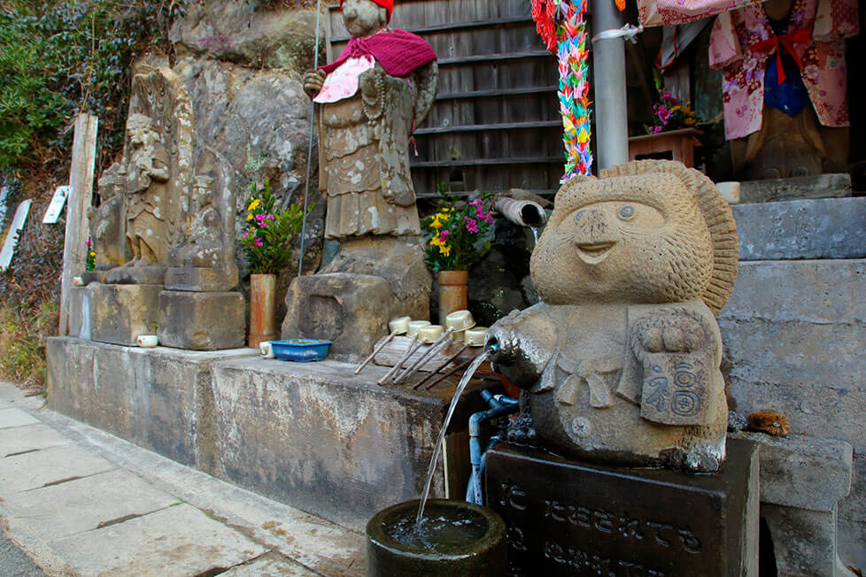 「天川の水」を見守るように何体ものお地蔵さんが佇む。一帯には神聖な空気が流れる。