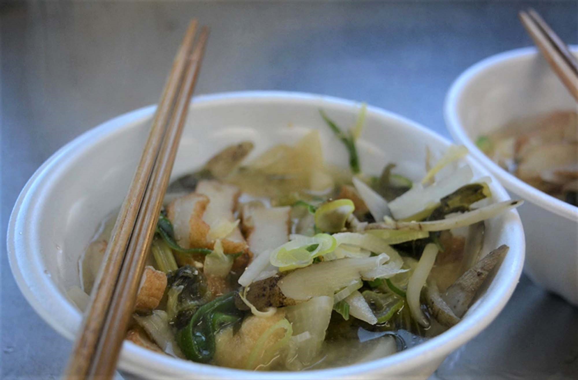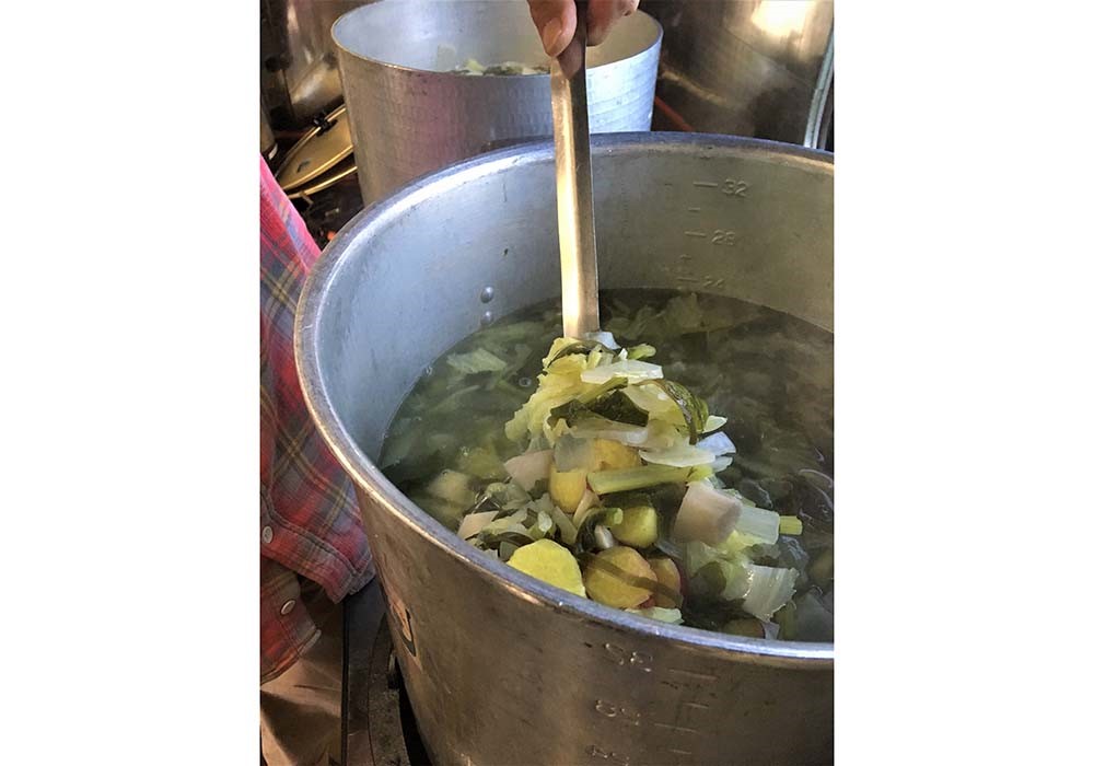 キッチンカーで調理された野菜たっぷりの「元気鍋」。