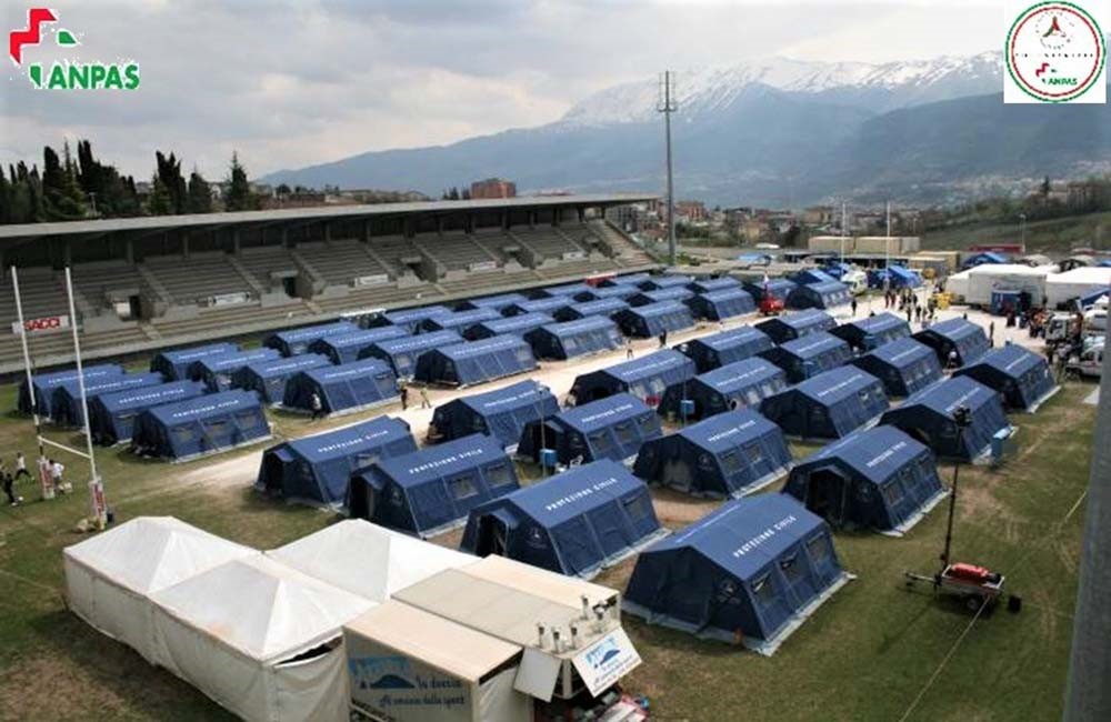 イタリアの避難所では1~2家族で利用するテントを設置。プライベートが確保される。