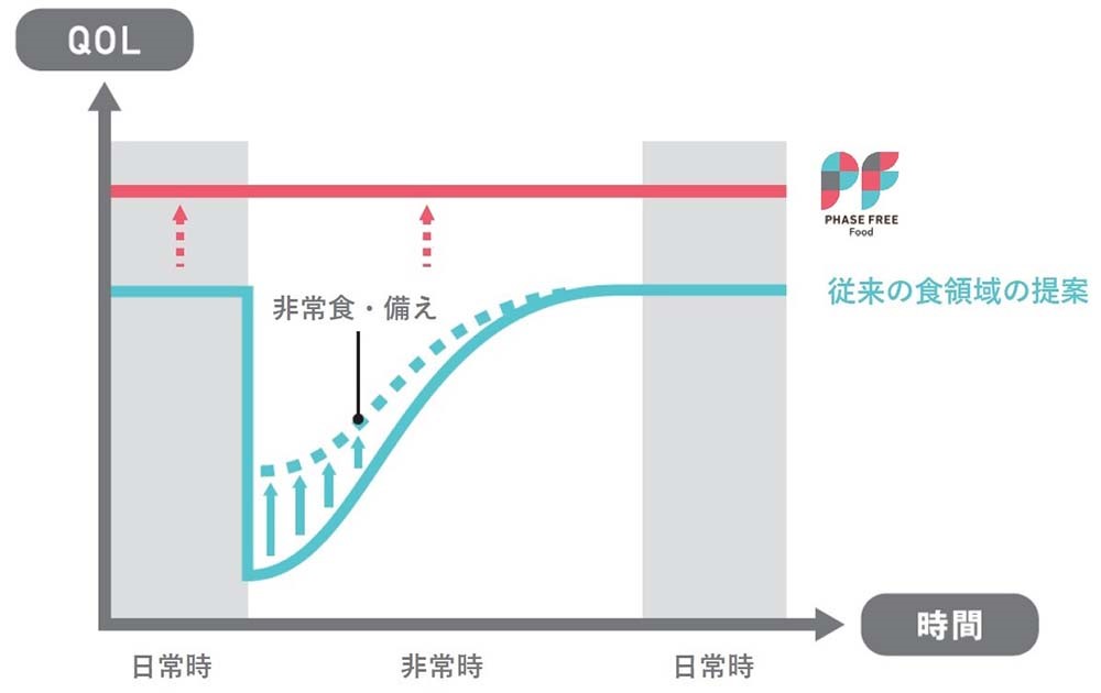 これまでの「日常時の食+非常時の備え」で提案するのではなく、「フェーズフリー:日常時の価値が非常時の価値に連続的につながる食」を目指せないか。