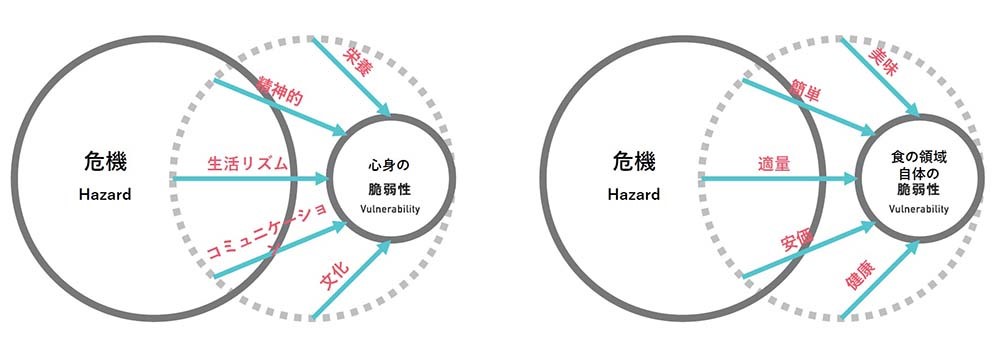 (セッションでの発表資料より)食の領域のフェーズフリーの実現には、「食の領域による心身の脆弱性の改善」「食の領域自体の脆弱性の改善」2つの方向性が存在するのではないか?