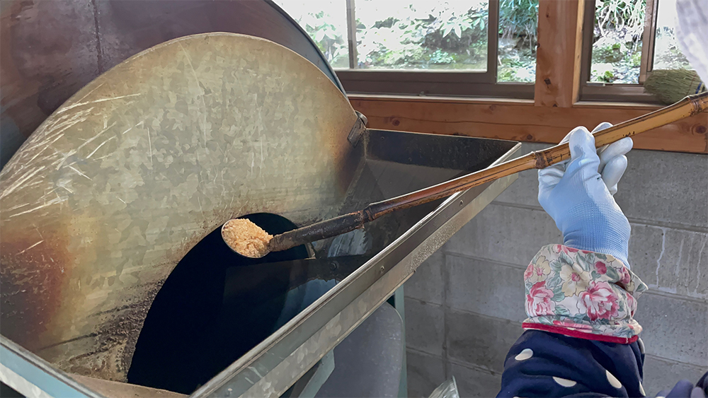 小学生の頃から焼き米づくりの手伝いに駆り出されていた人司さんは、その道、70年のベテランだ。「今みたいに灯油はなかけん、燃料は薪。常にくべていないといかんけん、子どもの頃はずいぶん叱られながらやっとったよ」と懐かしそうに当時を振り返る。