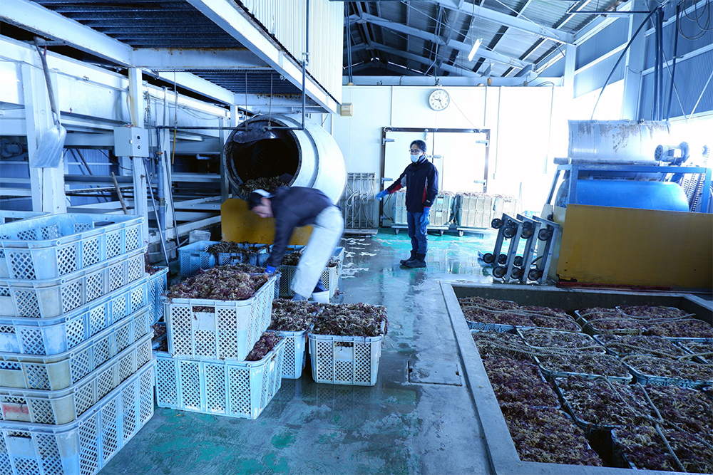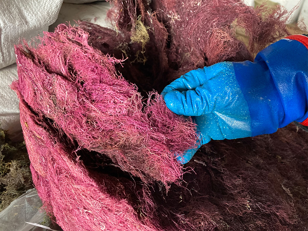 寒天の原料となる天草。小笠原商店では粘度や弾力のバランスを考慮し、10種類程度を配合している。